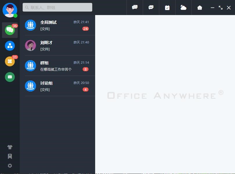7.即时通讯:通达IM即时通讯工具兼容Windows和Mac,提供多标签聊天窗口以提高沟通效率;支持内网和外网登录,消息漫游和阅读回执功能;实现PC、手机、浏览器间的统一通讯,支持群组消息和待办提醒;消息记录支持图片和文件快速查找,支持文件及文件夹传输。