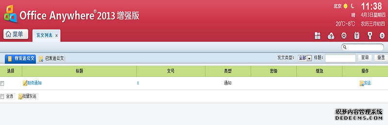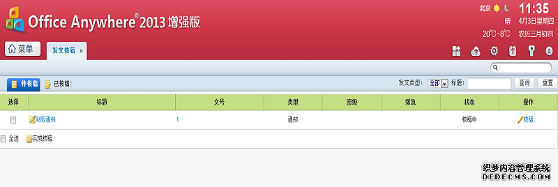 收到公文的人员可以阅读,阅读完成后公文进入已阅列表。