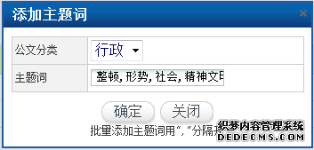a.主题词间用逗号分隔可一次性批量添加,附录一《国务院公文主题词表》供参考。如图所示: